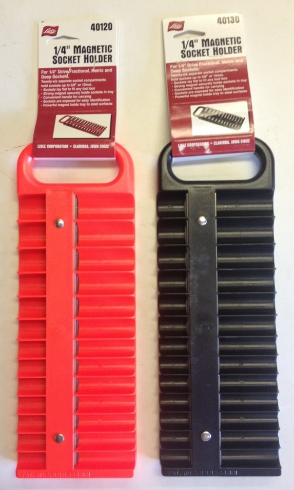 Prese magnetiche da 1/4 “Lisle rosse e nere Utilizzato per prese frazionarie, metriche e profonde 26 compartimenti separati per prese fino a 5/8 “o 15mm Il potente magnete mantiene saldamente la presa nel vassoio Prese distese per adattarsi a qualsiasi cassetta degli attrezzi Le prese sono esposte per una facile identificazione Il magnete di potenza mantiene il vassoio su superfici in acciaio. Lis40120 e lis40130