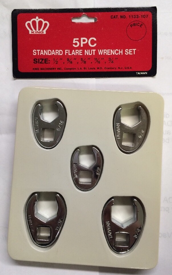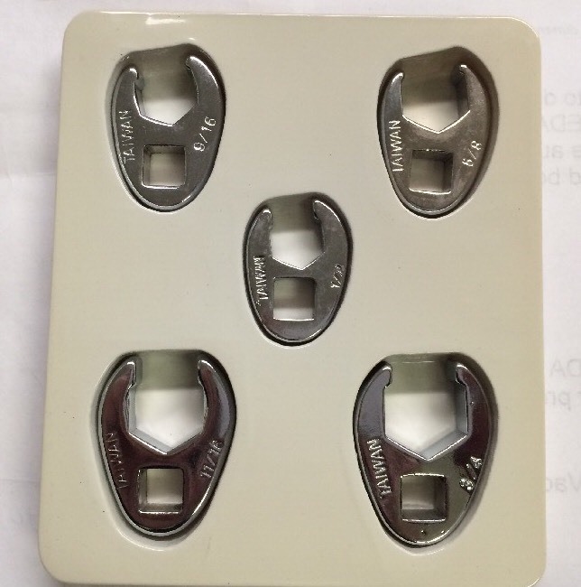 1/2, 9/16, 5/8, 11/16, 3/4 inch crowfoot