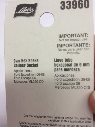 9 mm hex brake socket use for ford expeditions, ford escapes and Mercedes’s ml320 CDI