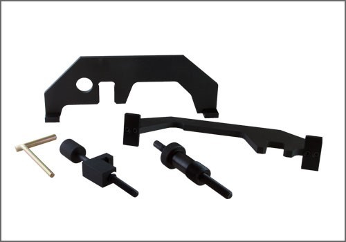 Used to set timing on cams of both cylinder heads. Includes hold down tool for cam fixtures. Crankshaft timing pin included. Applicable: BMW® N62, N62TU & N73 engines. | ||
