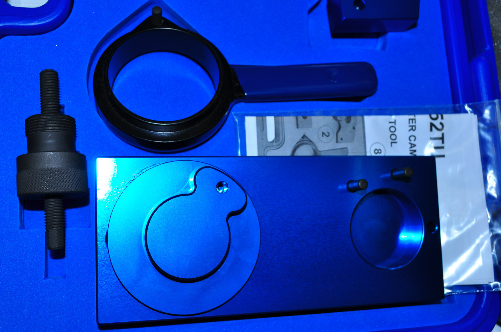 Master tool set contains a comprehensive set of tools to perform camshaft + VANOS timing on M52TU, M54, M56 Engines. The tools are also applicable for camshaft timing on non-VANOS engines (M42, M44, M50, M52, MS50US and S52US). The kit includes the following: