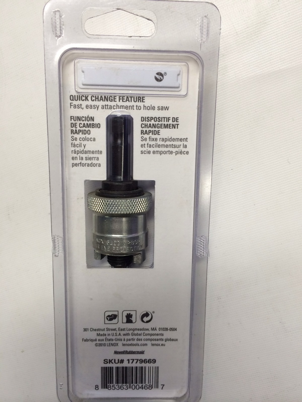 The Lenox Tools 1779669 5L Snap Back Arbor with 3 1/4-Inch Pilot Drill Bit for Hole Saws 9/16-Inch – 1-3/16-Inch is a durable, long lasting arbor that works with most hole saws.