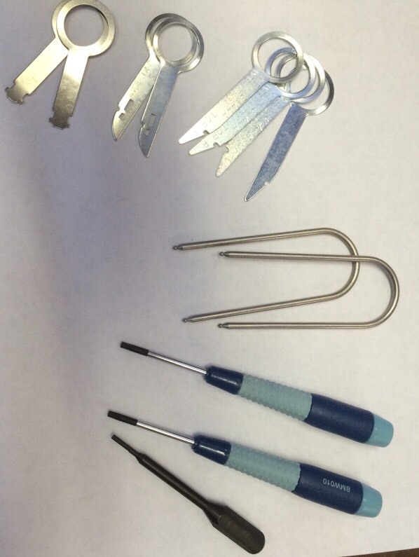 8-Piece Radio Removal Kit includes the 2040, BMW 050, 3344 A (includes two pairs), M 2070, 3316, BMW 025 and the BMW 010. Applications include: Ford and VW models with a DIN chassis, BMW models with anti-theft radio, Audi A4, A6, A8 and new VW Beetles, 1992 and later Mercedes 129, 140, 163, 202 and 210 models, VW Passat, Jetta and Golf, center console removal on newer BMW Z3, X5 and 5 Series (E39), Multi-Informational Display (MID) removal on BMW X5 and 5 Series (E39).