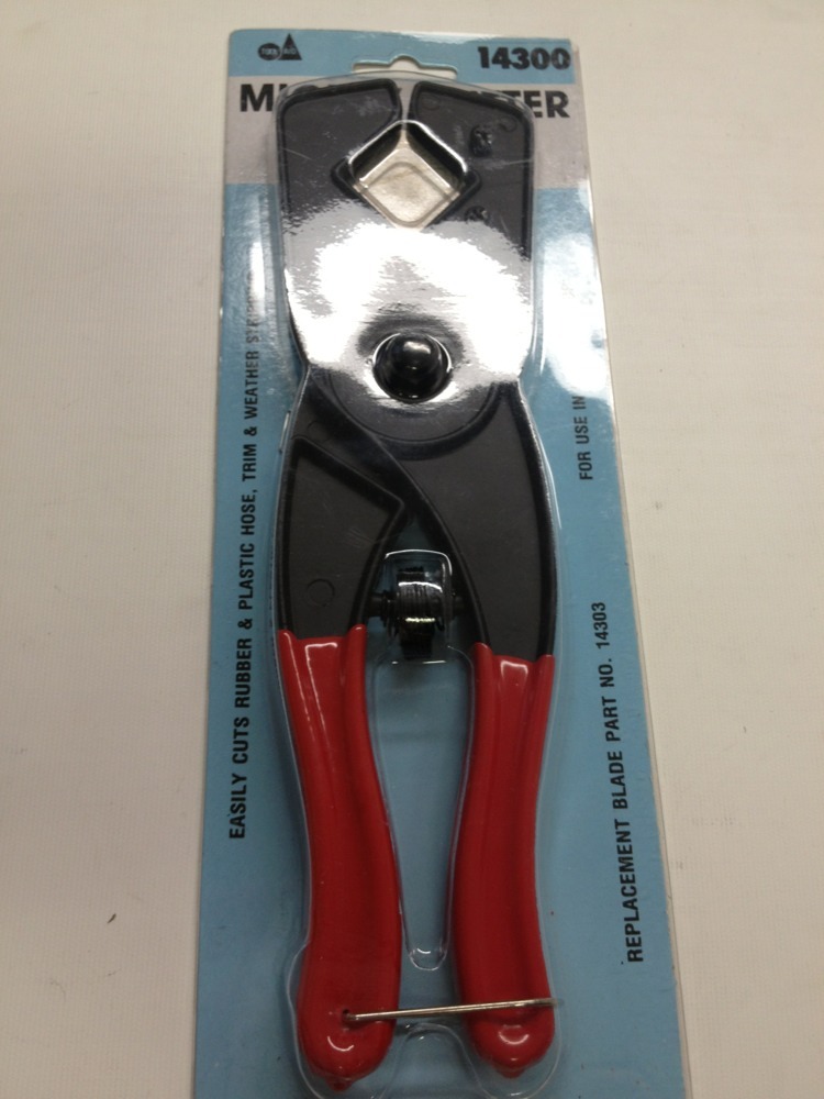 Can cut rubber and plastic hose, trim and weather stripping. Blade is replaceable.